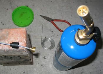 So I soldered it all together using the small pilers as a heatsink and the green cap holds water for a fast quench to make sure the wire doesn't melt.....